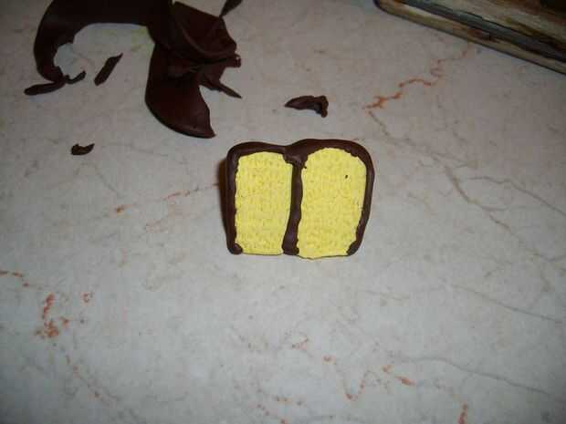 Ahora, en el gran círculo aplanado de helar, colóquelo suavemente sobre todo el fuera tu pastel, pegando firmemente. Con los dedos, comienzo cautelosamente rasgado a los pedazos en el exterior, hasta que te queda solamente la cantidad que usted necesita sobre el pastel.