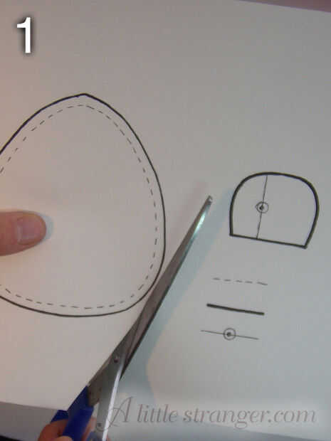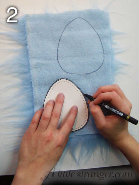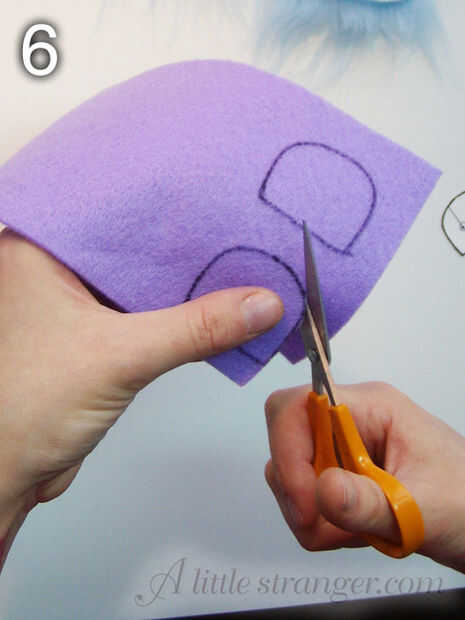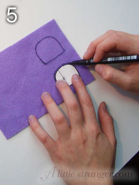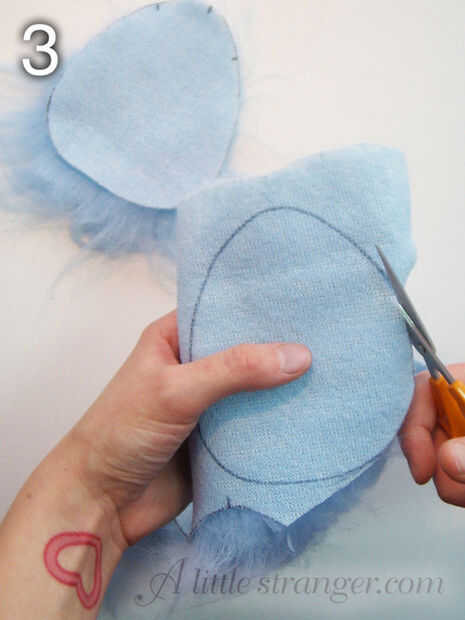 5) Marque sus oídos en la tela de fieltro. El adorno azul en este tutorial tiene orejas pequeñas, el color de rosa en la primera foto tiene orejas grandes.
