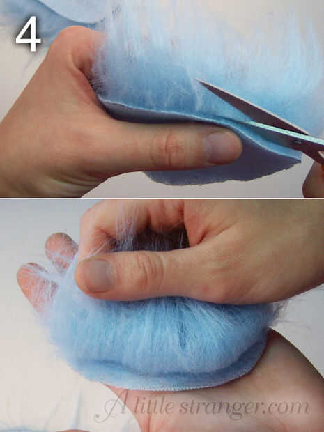 4) punta - para un mejor acabado de recortar el pelo en un margen de 5 mm alrededor del borde de las piezas de piel, esto evita exceso fibras abultar encima de las costuras.