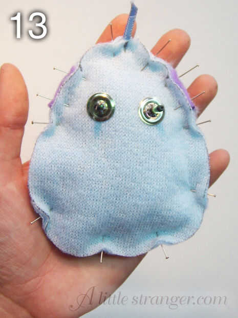 13) el monstruo debe tener este aspecto, todos los pedazos fijados y listos para ser cosido.