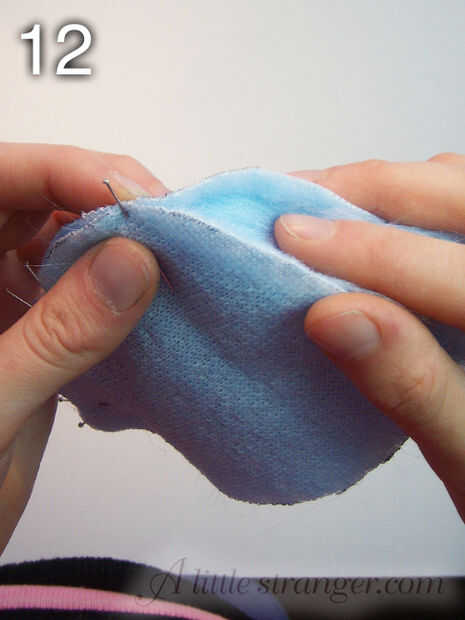 12) punta - ejecutar el dedo dentro de la costura antes de prender los bordes juntos, Esto empujará las fibras de la piel hacia adentro para que no se atascan en las costuras y crean bucles cuando le ponga la salida derecha