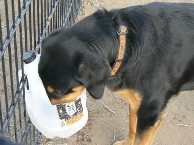 De todos modos, he diseñado una fuente de agua que cuelga de la valla de una jarra de leche de galón que puedo dejar en el parque para que todos puedan utilizar.