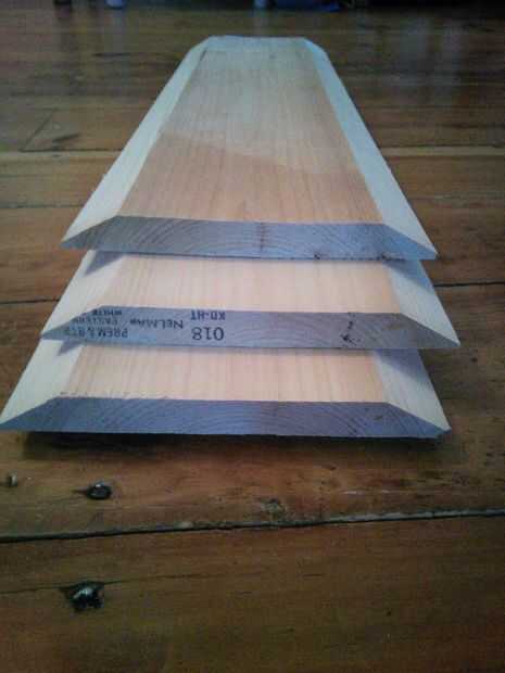 180 grados de un triángulo divide uniformemente significa 30 grados para cada uno de seis bordes biselados. Corté mis ángulos de 30 grados con una sierra de mesa pequeña.
