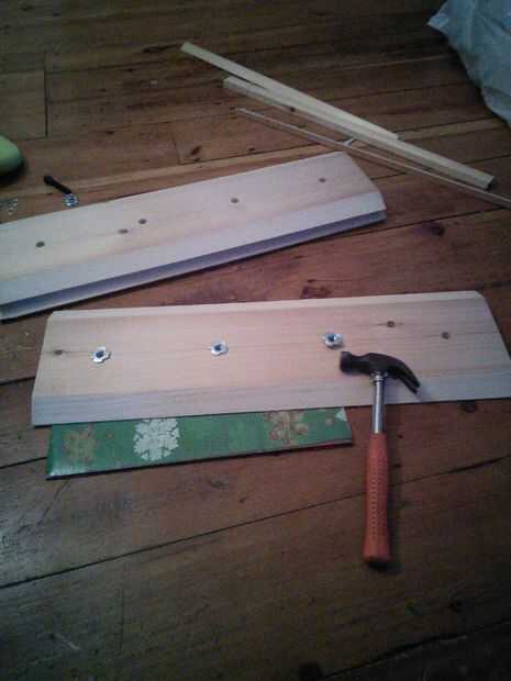 Martillo T-nuts en los tableros de pino, para que estén en el interior del prisma. Para asegurar en el tablero más firmemente, puede utilizar un poco de pegamento en la tuerca, teniendo cuidado de no conseguir alguno de los hilos.
