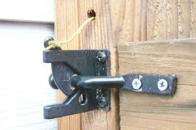 ¿Ningún soldador? La forma más barata posible para tirar dos puestos a un lado para que la puerta se cuelgue recta sería golpear un clavo grande en los postes en la parte superior y parte inferior de la línea el puntal define. Ejecutar al menos dos capas de alambre de acero bastante pesado entre las uñas. Utilice una paleta plana, como un agitador de pintura, para girar y mantener la torsión en el alambre.