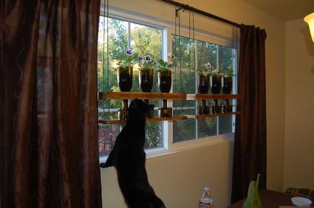 5. Coloque la botella cortada en la bandeja y el agua; al final de la botella captura el exceso de agua.