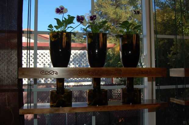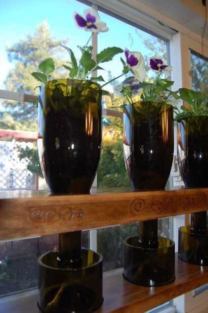 4. Llene la botella cortada con rellenado de tierra y una planta.