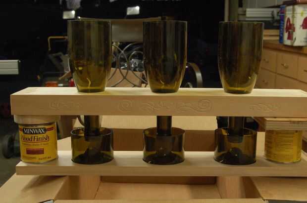 El objeto de este paso es cortar ranuras en los estantes inferiores para asegurar los extremos de la botella. Las ranuras se cortan con una fresadora y plantilla. El procedimiento detallado es: