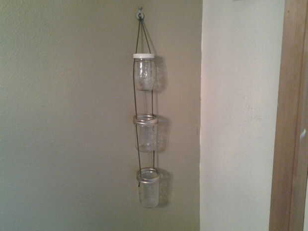 Nos encantan los tarros de masón en mi casa. Además de guardar los alimentos, son grandes para vasos de agua y bloody mary.Vi algo en el internet un tiempo atrás donde alguien había hecho un masón con luz colgante tarros de un tocador barato y pensé