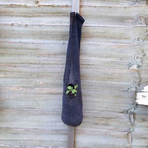 qué hacer con todos los calcetín con agujeros en el talón. Si carecen de espacio y quieres reutilizarlos, luego convertirlos en colgar macetas del ahorro de espacio