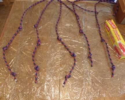 Atar nudos hacia un extremo de la cuerda. Hice grupos de dos y tres, pero sólo puede hacer uno si quería.