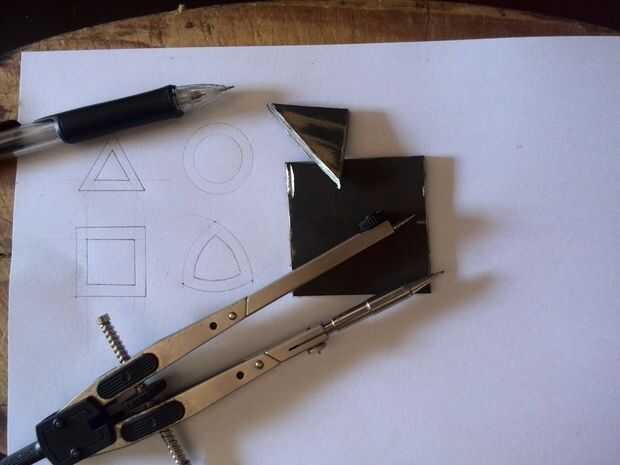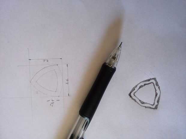 Dibujar algunas formas básicas y determinar si sus herramientas y habilidad le permitirá moldear el metal en su forma deseada. Es difícil presentar un lado plano y una curva perfectamente redonda no está en mi conjunto de habilidades, así que fui con un triángulo redondeado (se llama un triángulo de reuleaux al parecer).