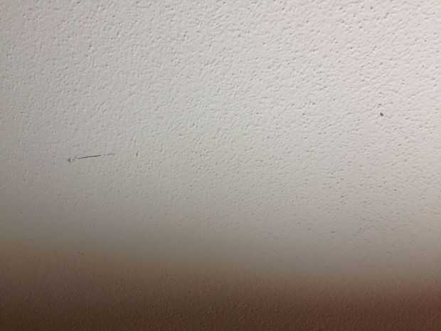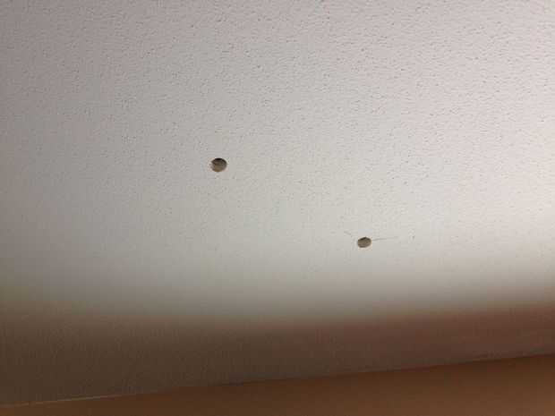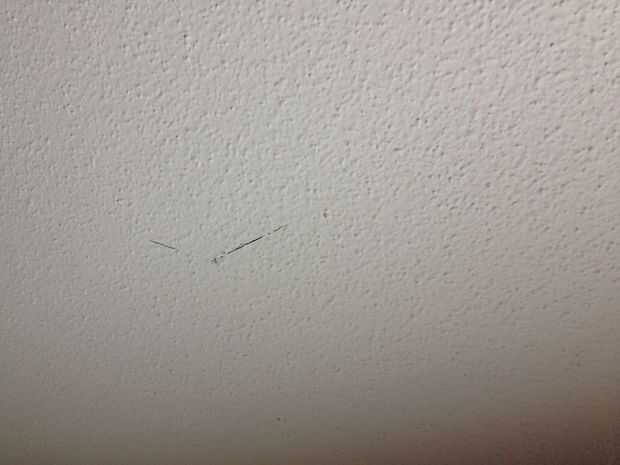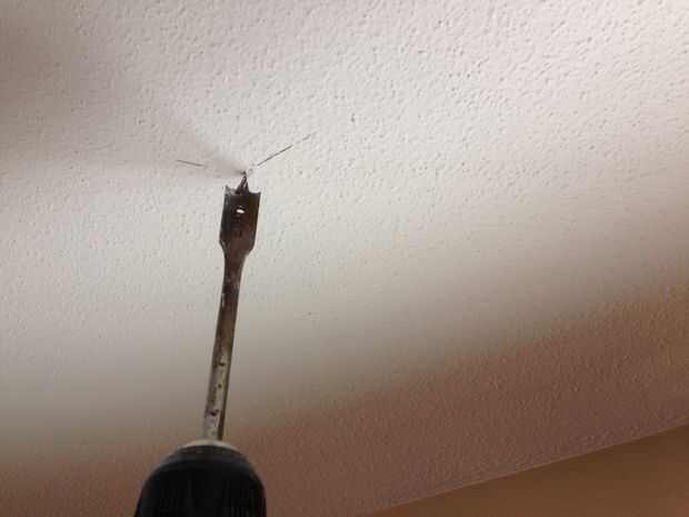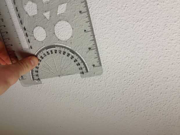 Claro de su escritorio y Súbete encima de él. Toma un palillo de la yarda y medida 12 pulgadas lejos de la pared hacen 2 o más marcas en diferentes lugares. Dibujar una línea que mide 3 pies de largo, centrados sobre la media de la mesa. Próximo al final de las líneas hacen un ángulo de 45 grados largo 8 pulgadas. El punto del ángulo y el final de la línea de 8 pulgadas será donde los dos agujeros colgar los altavoces del techo.
