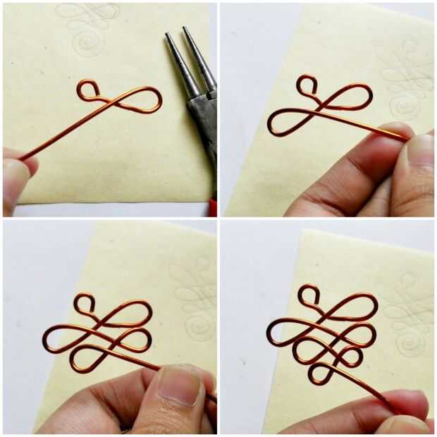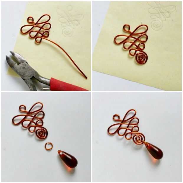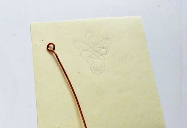 Puedes simplemente seguir las fotos para hacer este colgante. Dibujar el patrón en una hoja de papel y trazar el cable alrededor del patrón para hacerlo más fácil.