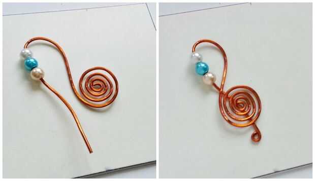 Doblar el alambre para formar una forma G-clef. Después de hacer la gran curva de la G-clef no termine el pendiente todavía. Martillo de los remolinos para aplanarla. Esto hará que el robusto patrón.