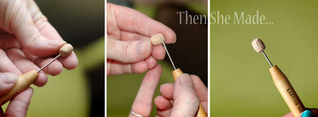 -A continuación la forma en la forma deseada para un grano y hágale un agujero a través del centro. Asegúrese de que el agujero es lo suficientemente grande como para que su guita, o cáñamo, cuando dobló puede del hilo de rosca a través de él.