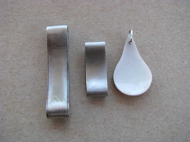hasta hace poco pensé todas conchas de bala fueron hechas de bronce. Al parecer también puede encontrar las cubiertas de la cáscara de acero. Reducir esta cubierta de .45cal, los orificios perforados y montar un pedazo de concha de abulón pulida en é