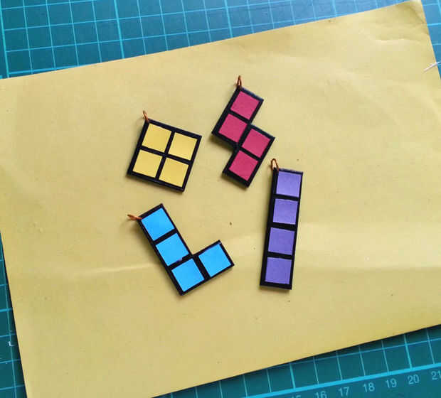 Allí! tiene tetris fresco inspirado colgantes. Coloque el colgante en una cadena o cordón negro.