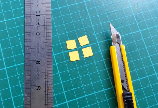 Ahora pegar con cuidado las piezas cuadradas de recorte en las formas del tetris.