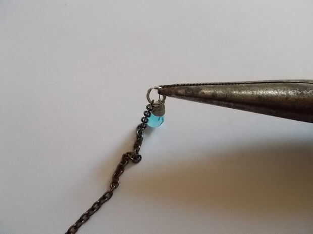 Después de envolver los granos, usar anillas para sujetar los granos a los extremos de la cadena que se corta para el colgante. Fije el colgante para un collar y está listo para mostrar tus atributos!