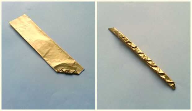 Ahora, empezar a hacer pequeños pliegues diagonales en la envoltura de una esquina. Asegúrese de mantener los pliegues delgados e incluso (como se muestra en la segunda foto de este paso).