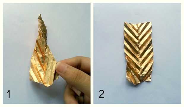 Ahora desplegar cuidadosamente el segundo doblez básico y apretar suavemente los 2 lados de la envoltura plegada de una forma básica de la hoja (como se muestra en la última foto de este paso).