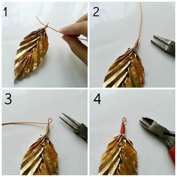 Ahora introduzca un alambre del arte a través de ese agujero. Utilice los alicates de punta plana para doblar el alambre. Utilice los alicates bucle para hacer lazo pequeño s. Ahora enrolle el alambre hacia abajo para cubrir el peciolo.