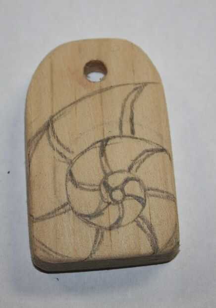 Utilizando un lápiz, marque ligeramente el diseño que desee en el colgante. Siempre podría omitir este paso y a mano alzada su quema, pero me gusta planificar con antelación. Es mucho más fácil borrar una línea de lápiz de una línea de woodburned.