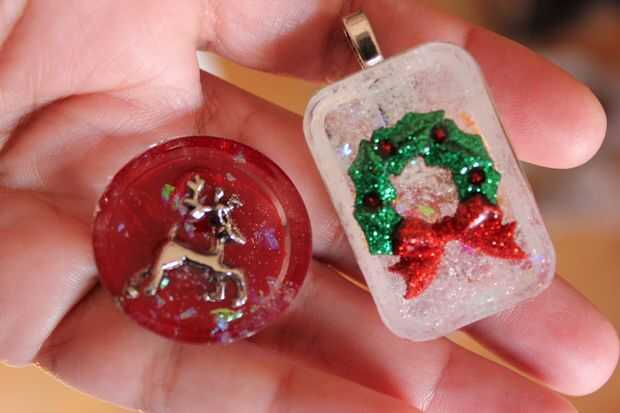 Me encanta hacer estos colgantes brillantes y coloridos. Son uno de mis proyectos favoritos y más versátiles.Las joyas de imitación se crean con brillo y resina de epoxy. Son muy durables y pueden incluso personalizarse con pintura, fotos y encantos.