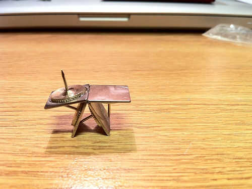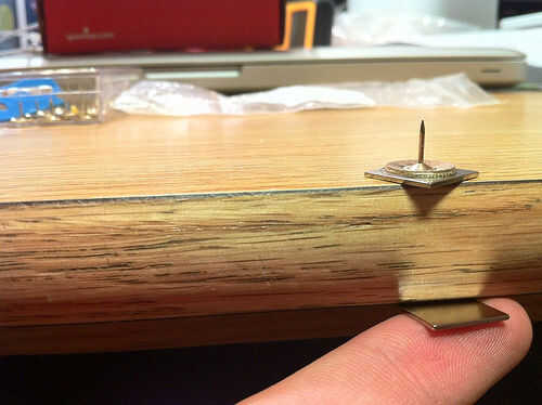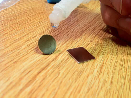 Empezar pegando un imán cuadrado a un pin. Utilice esto para determinar la orientación de los imanes. Más para fines de entretenimiento que practicidad, colocar el imán que quiero empezar a pegar en mi escritorio y comprobar para ver si atrae o repele el pin/imán pegado arriba. Pegue el pasador 2 en la cara superior del imán debajo de la mesa. Dos pares de polos/imán deben rechazar frente a direcciones opuestas.