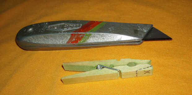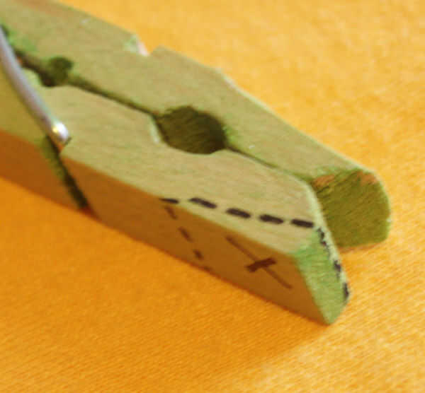 Cortar el espesor extra en el extremo de una pinza para la ropa.