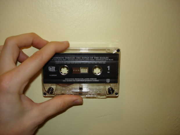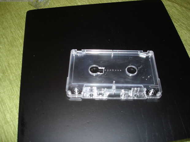Elegí intencionalmente mala música por lo que las etiquetas debían ir. Hay algunas maneras de hacerlo pero me conformé en rascar las etiquetas apagado luego pulir el plástico. Rayar la cinta con lana de acero 000 o bien progresivamente grados de papel de lija mojado (400, 600, 1500 entonces?).