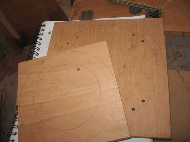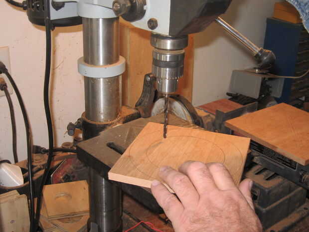 Taladrar agujeros de guía dentro de los círculos interiores y entre rayos.