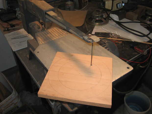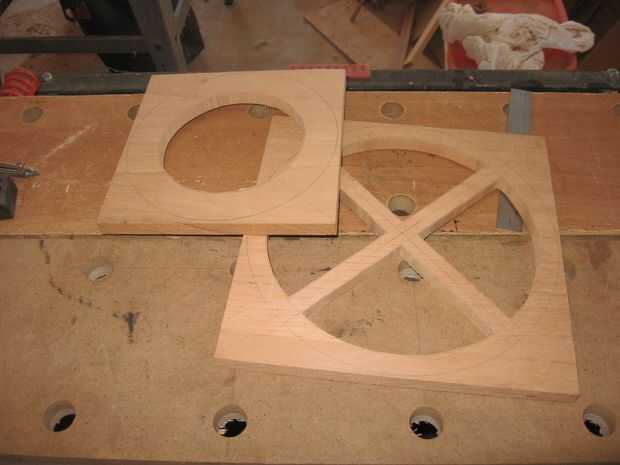 Cortar el círculo y entre los rayos, manteniendo apenas tímido de la línea de lápiz, para lijar después. Mantenga la Plaza fuera por ahora.