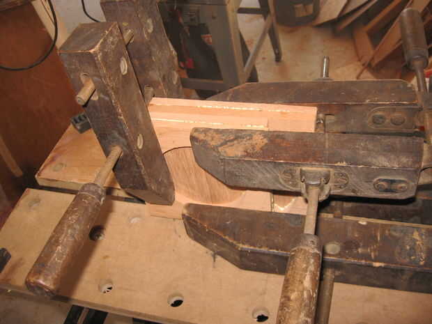 El pegamento y las mitades de la tapa y la bandeja juntas con el grano de madera en cruzan de ángulos para ayudar a minimizar la deformación de la exposición a los elementos de sujeción. Mantenga los bordes de las respectivas tapa y bandeja de espacios en blanco alineados entre sí.
