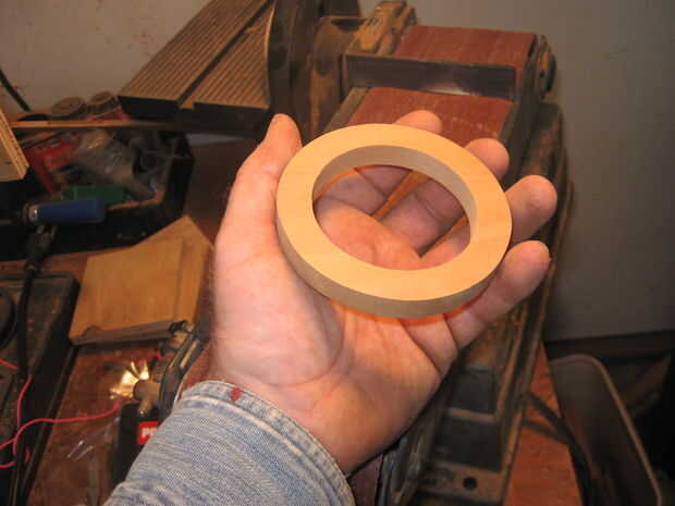 Mientras que el pegamento fija, cortar el anillo de retención, luego arena bordes y dos caras: ID = tarro rosca diámetro externo + 1/16" O.D. = diámetro interior del anillo + 1"