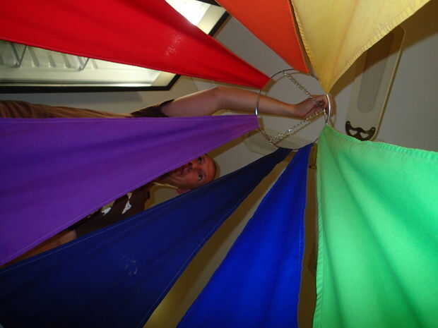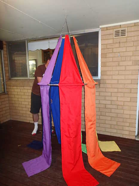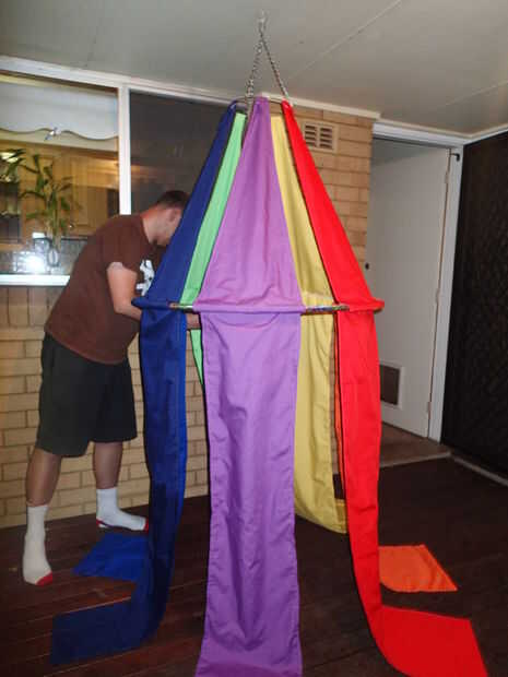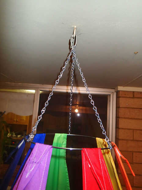 Lo siento no tengo fotos a luz del día, o donde el dosel está colgando sin tocar el piso. Estoy trabajando en conseguir fotos de ella en su nuevo hogar.