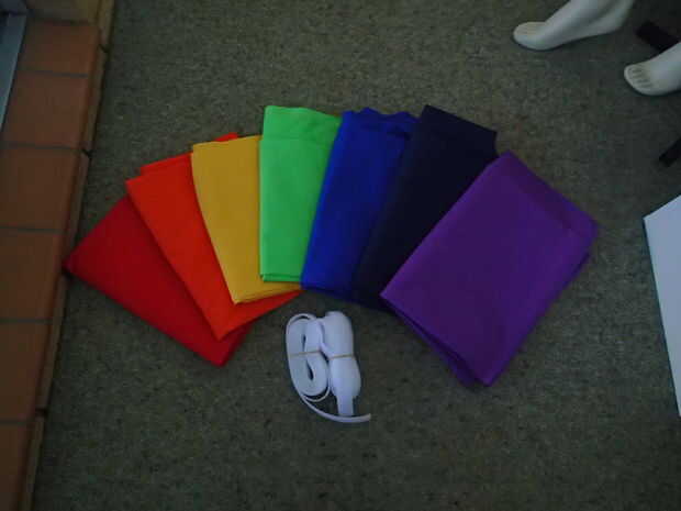 - 3 metros (cada lado) de coser Velcro en color que mejor se adapte sus telas (si se cambia el tamaño del panel necesitará adaptarse a esto; es 2cm menos que la anchura del panel terminado x el número de paneles tiene más un poco extra para hacer las lengüetas en la parte superior).