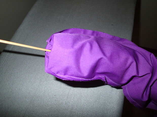 3. Uso de la aguja de tejer o pincho para trabajar suavemente el punto del triángulo a través totalmente.