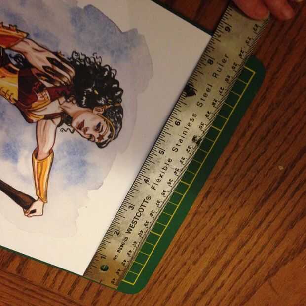 Medir el largo y ancho de su impresión. Marca de la misma L y W en la pieza de cartulina y recórtalo.