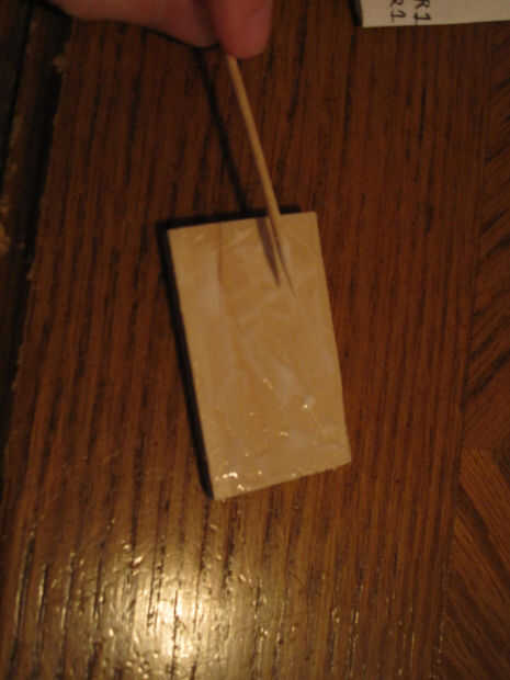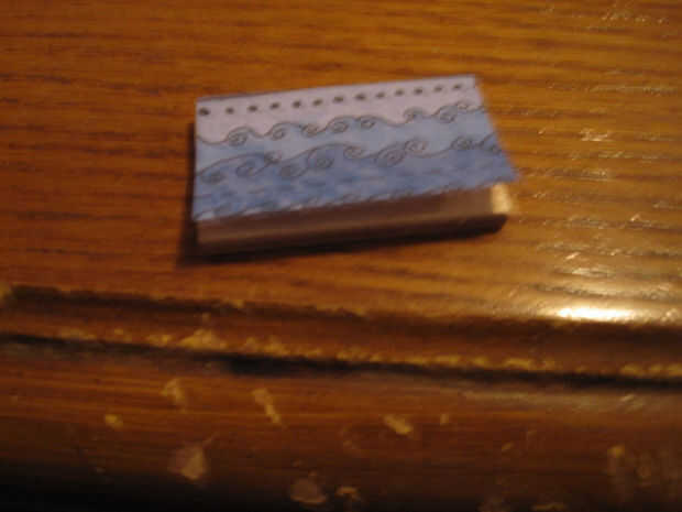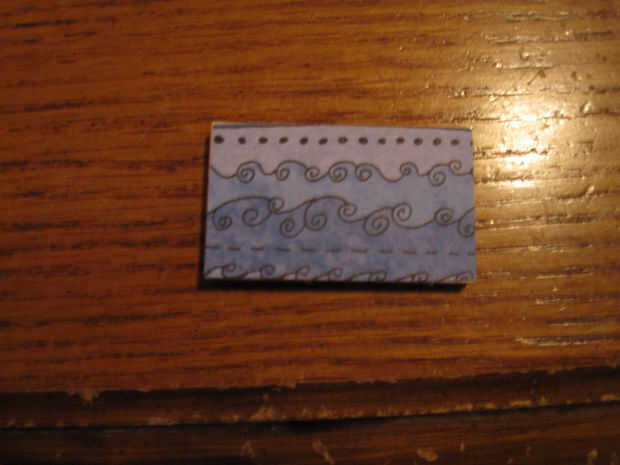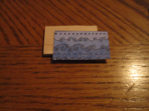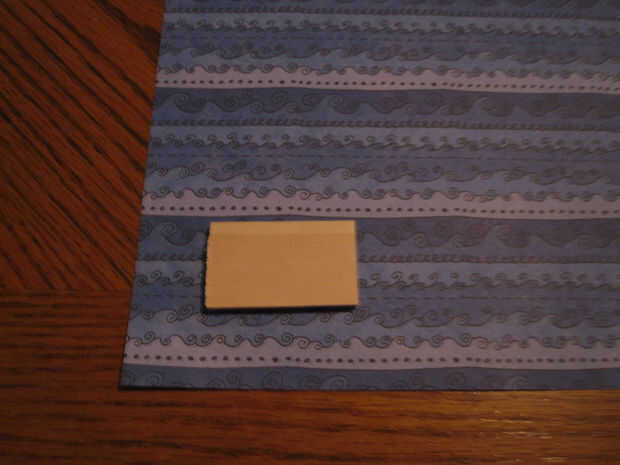 Este paso es opcional, pero da el producto final menos casual look. Puede utilizar cualquier papel de scrapbooking, pero opté por usar éste con un patrón de onda de mar en él. Corte un pedazo de papel del tamaño de la pieza de madera. Extendido pegamento en el pedazo de madera muy finas, como no necesitamos tanto para sujetar el papel firmemente.