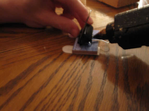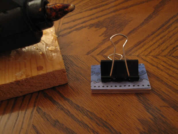 Sin embargo, algunos de nosotros no son tan afortunados. En mi caso, la parte posterior de mi clip binder puede moverse aún después de ser pegado. Esto puede causar el enlace del pegamento caliente para ser menos eficaz, ya que tiene menos superficie para enlazar a. Así, si esto sucede, vuelva y añadir algunos más pegamento entre el clip y la madera.