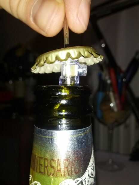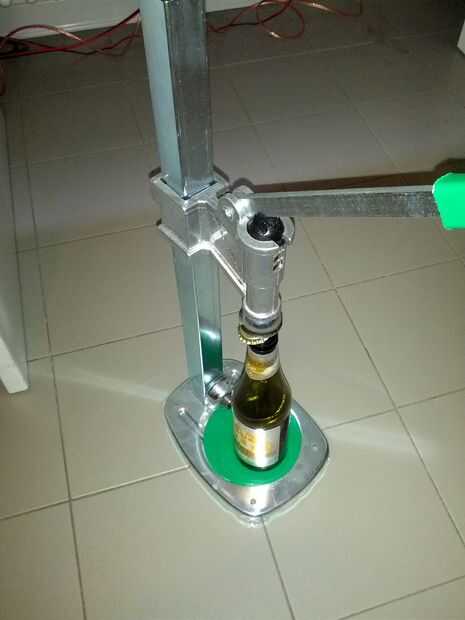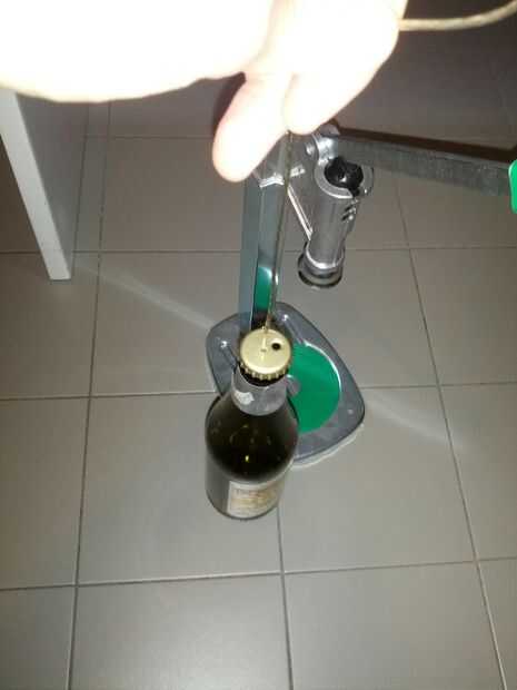 Nota: con la máquina que capsula necesita un truco... Cuando pones la botella debajo de la herramienta de prensado, no funciona como el alambre de la botella la obstruye, simplemente viento máximo dentro de la botella, dejando sólo 3-4 cm. Usted debe estar bien ahora! Si no,