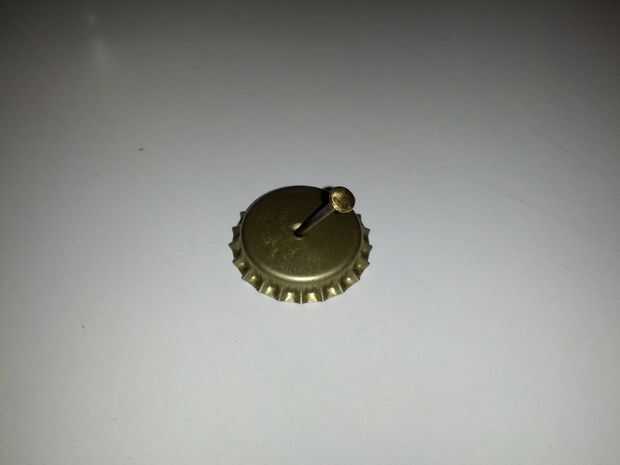 1) hacer un agujero en el Centro de la tapa con la uña. No hacer el agujero en el lado de la tapa, de lo contrario la botella no colgará directamente