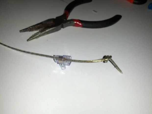 Nota El borne de tornillo es muy seguro, pero estoy usando un alambre de acero revestido en plástico y si saco el terminal muy fuertemente el plástico se va de todos modos puede apoyar el peso de una botella y mucho más sin ningún problema... pero sabes... a ser más seguro hacer un nudo después el tornillo!