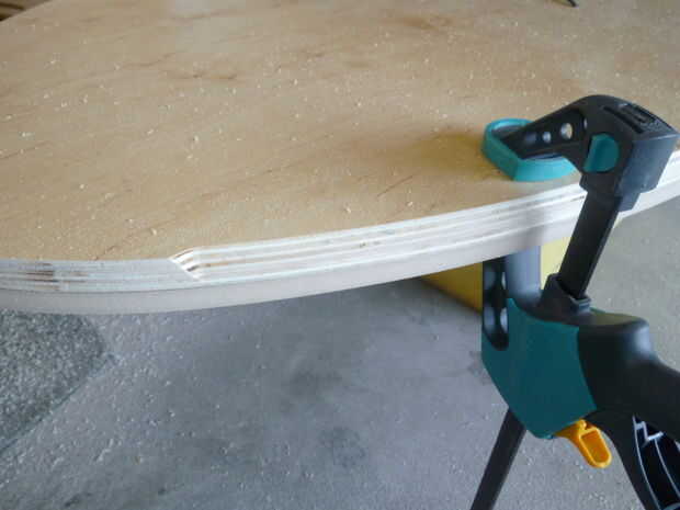 * He enmascarado los bordes y pintó de blanco la parte superior. He dejado los bordes expuestos para mostrar las capas de madera contrachapada diferentes similares a la