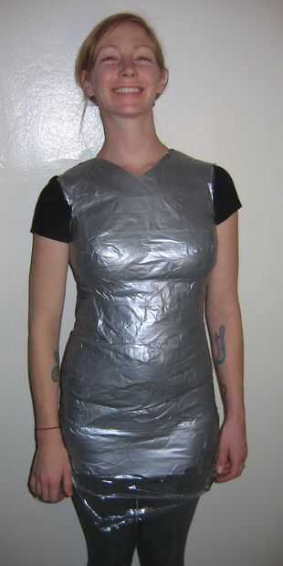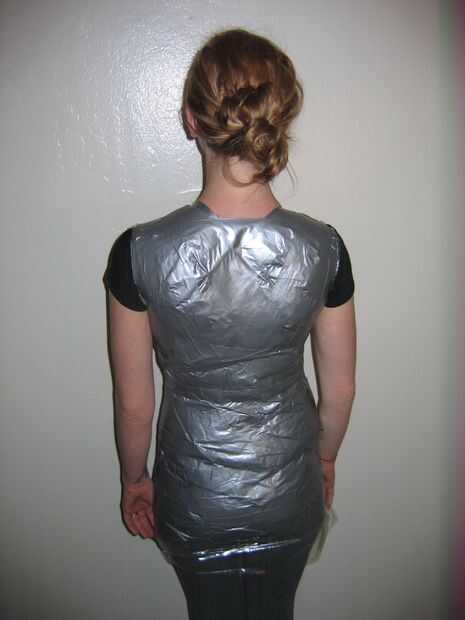 La mitad superior de su formulario de vestido debe ser bastante robusta, pero si crees que es demasiado delgado para soportar durante el uso de clavos, seguir adelante y una última capa alrededor de su modelo de cinta. Hacer esto para la parte inferior la mitad, haciendo que algunas de las piezas superior e inferior se solapan para formar un sólido y robusto vestido.