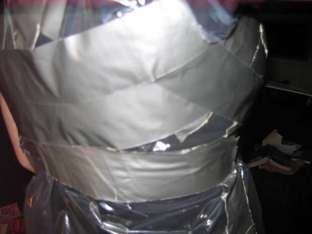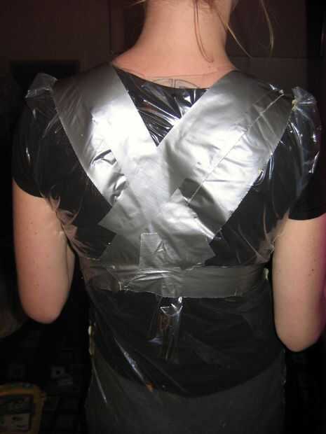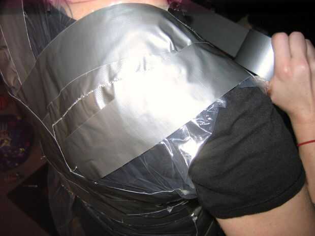 Ahora estás listo para trabajar en la parte superior de los hombros y brazos. Si usted utiliza un saco o camisa que tiene mangas, ahora es el momento para eliminarlos. Simplemente corte las mangas para que la costura del hombro en una camisa sería (guíese por la camisa de su modelo, si es posible) y eliminar el exceso de material. Comenzar a grabar sobre los hombros cubriendo las zonas expuestas de la base. Puede cinta en todas las direcciones, ya que los hombros deben ser lo suficientemente robustos para soportar el resto del formulario una vez que está en la percha. Conseguir como cerca del borde de las sisas como sea posible cuando taping sobre el hombro de su modelo; Si accidentalmente cinta ella o su camisa, es mejor suavemente tire de la cinta ahora y doblar la viscosidad expuesta bajo antes de que forma un asimiento fuerte en el modelo. Continuar grabando los hombros hasta que cubra la base.