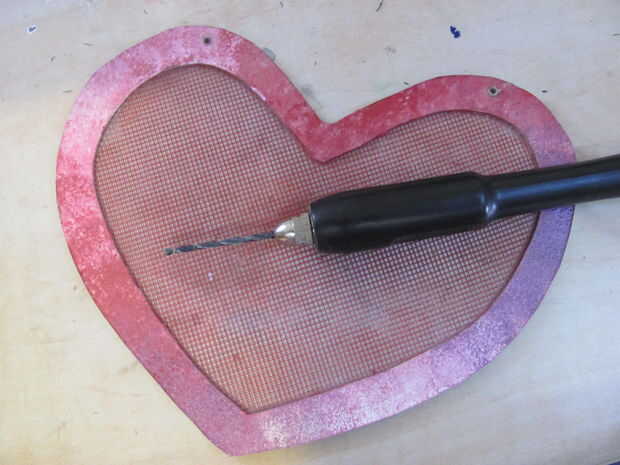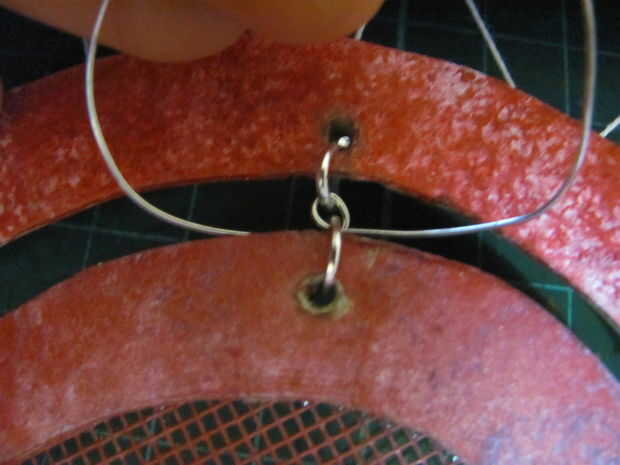 Hacer agujeros en la parte superior de la forma media y grande. Conectar las dos formas con una cadena o hilo, lo que le apetece. Asegúrese de que hay al menos un espacio de 0.5cm entre las formas.