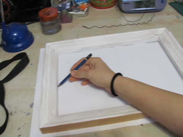 Dibujar las fronteras del marco desde el interior. Ahora dibuja el diseño que te gusta dentro de las fronteras. Una de las formas tiene que ser grande!
